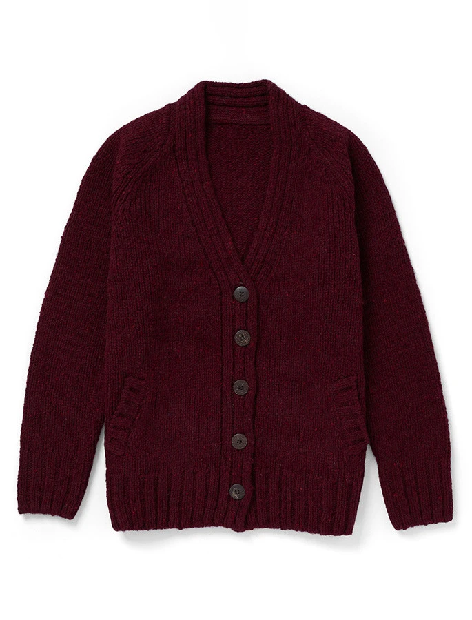 This cardigan is made from 100% Donegal tweed wool in Ireland. The V-neck design gives it a flattering and feminine look, while the button-down front makes it easy to layer over your favorite tops. The cardigan comes in a variety of colors, from classic neutrals to vibrant hues, so you can find the one that suits your style.